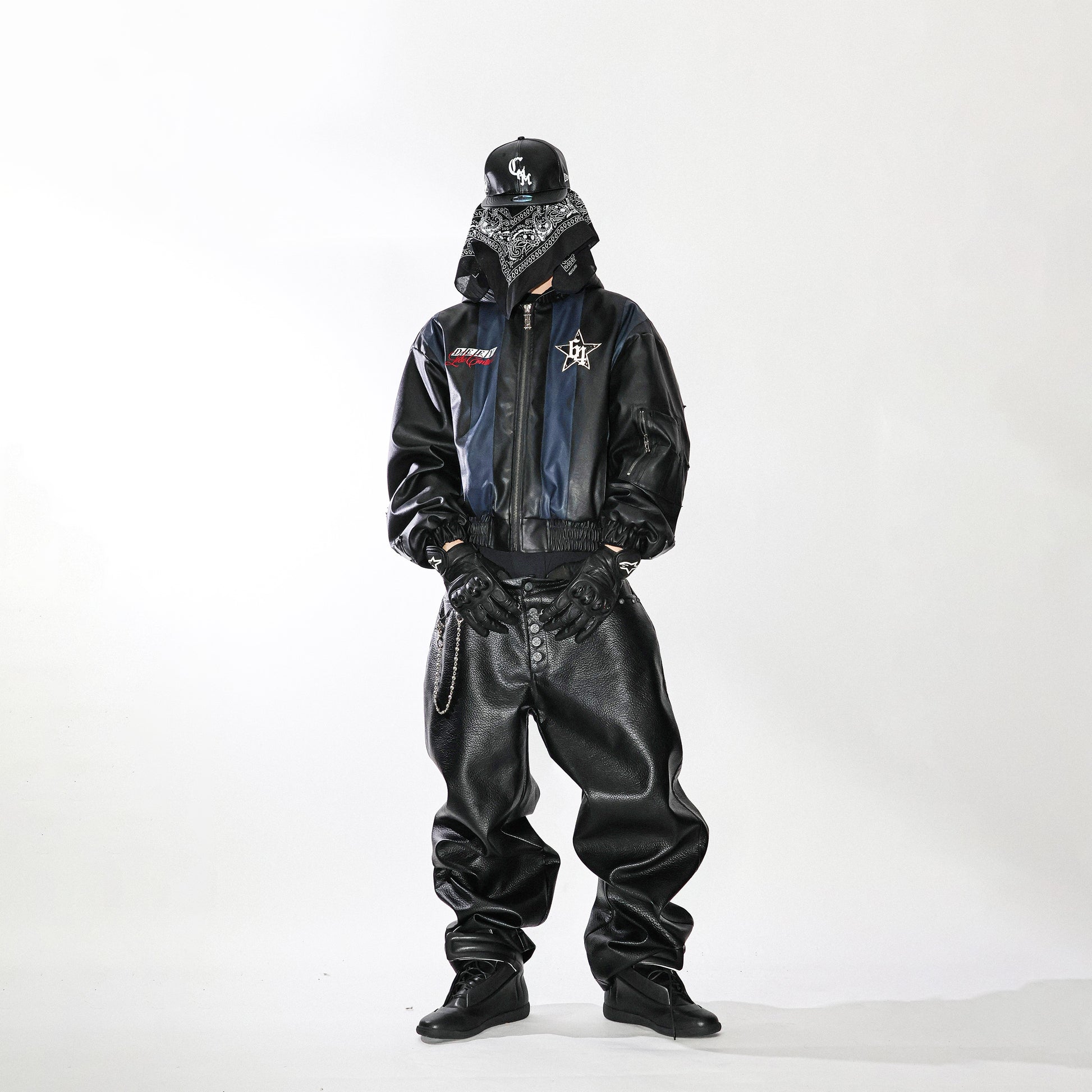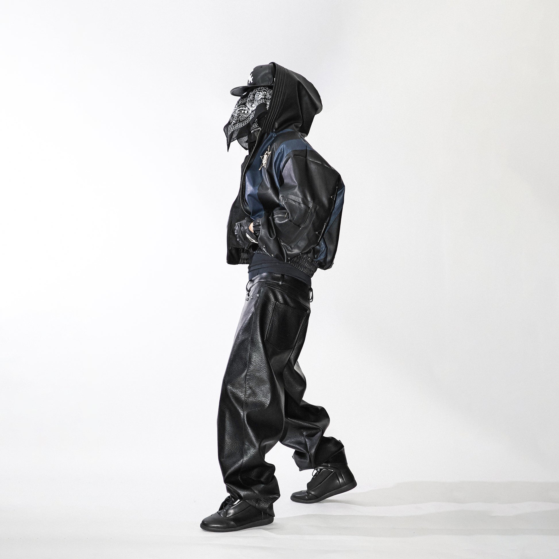 Black and blue striped hooded jacket