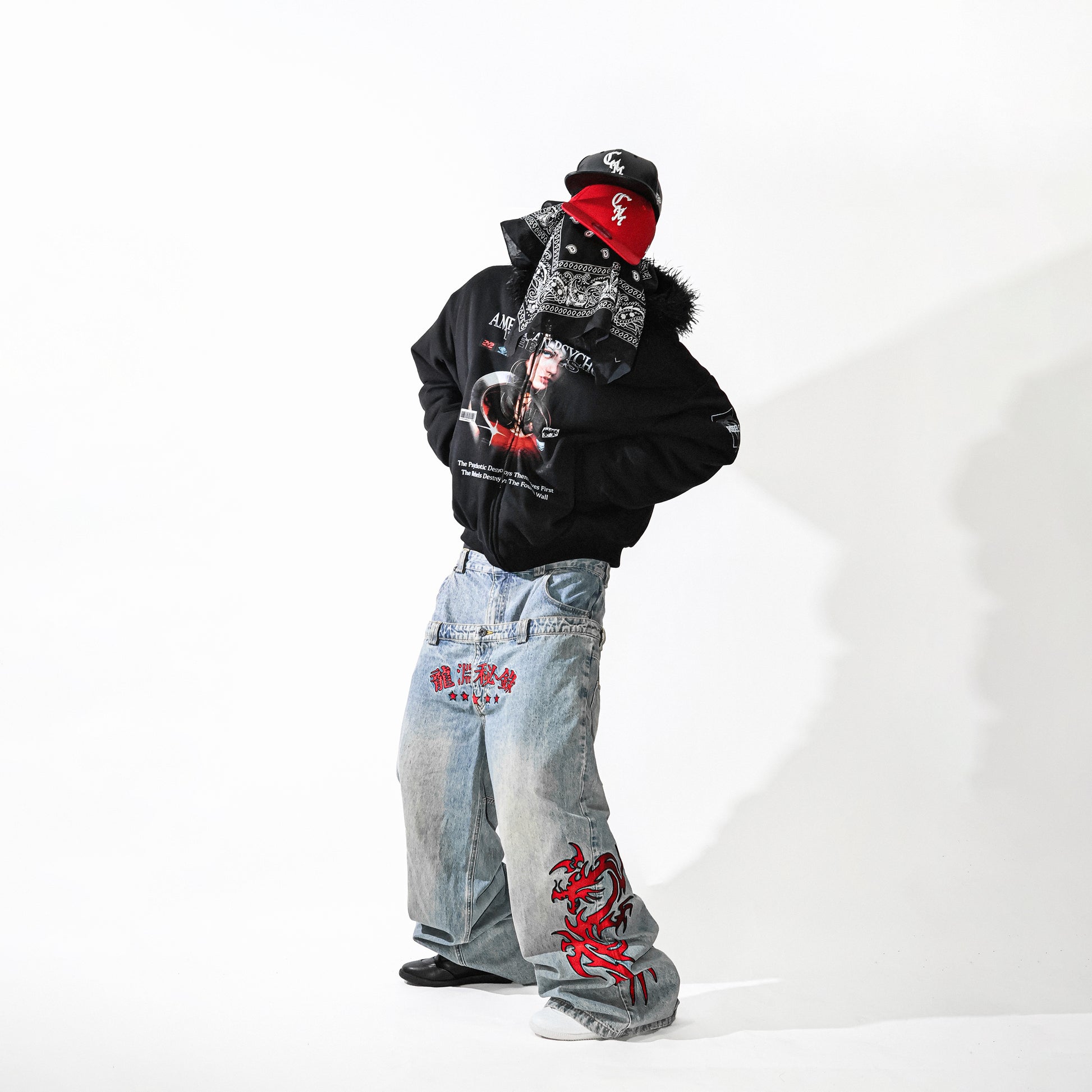dragon motif embroidery jeans