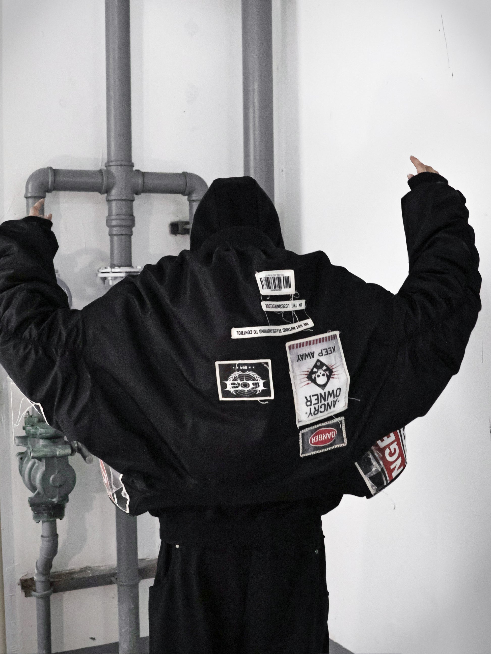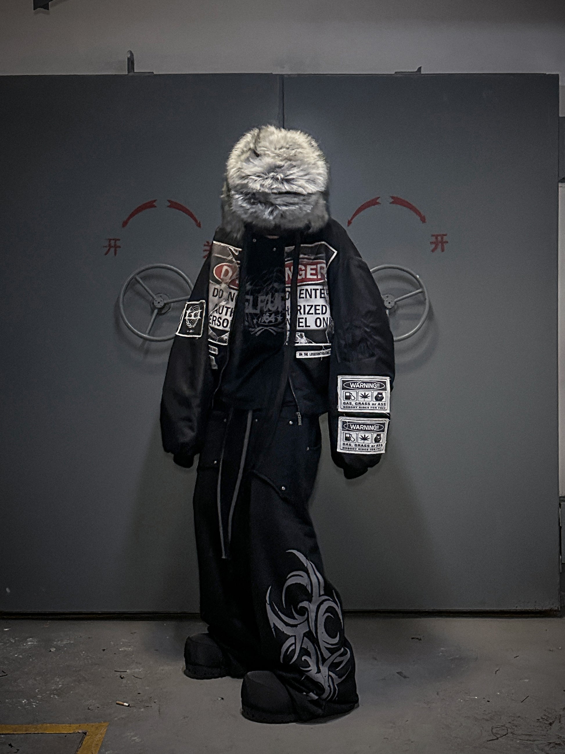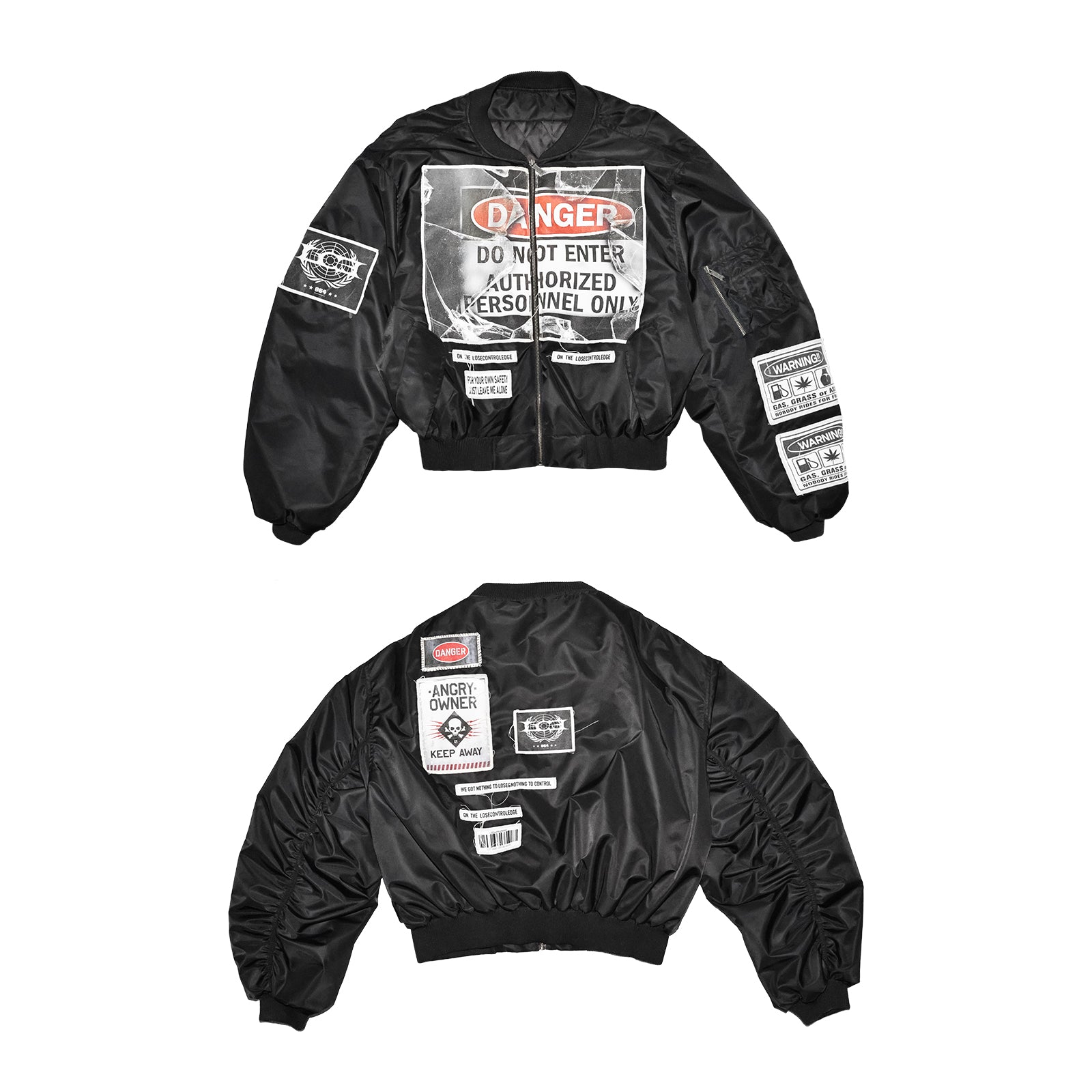 Warning Print Patches Bomber Jacket
